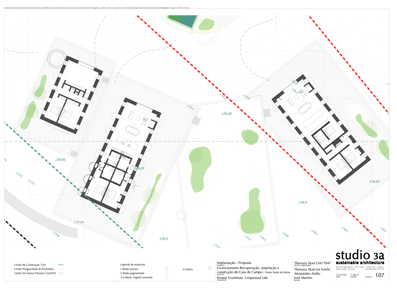 Crafted by Studio 3A, a sustainable architecture firm in Lisbon, the project captures the essence of a traditional Portuguese country house, utilising taipa (rammed earth), a historic building technique using clay from the land itself, but with larger modern windows. The project comprises three residences (one private dwelling of 83m² with two bedrooms and one bathroom and two 140 m² guest houses with two bedrooms and one bathroom each) alongside a swimming pool. Please note: The projecto de especialidades is pending finalisation, granting new owners the freedom to customise heating systems, kitchen setups, and other details to suit their preferences.