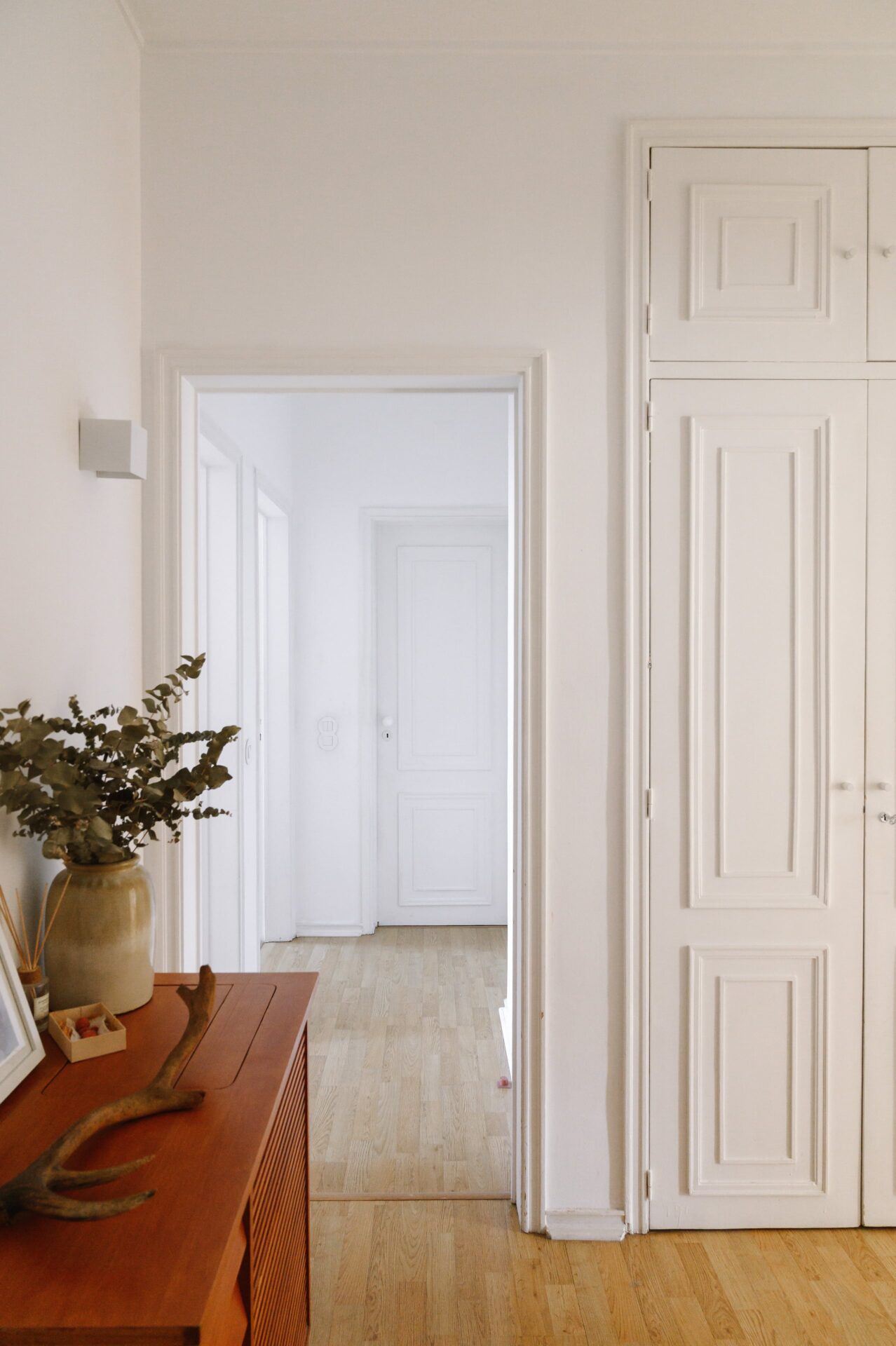 The main living space is unusually large, with a fluid connection between living, dining, and kitchen areas. This creates a calm and open environment suited to everyday use, with a clear distinction between social and private zones. Natural light enters consistently throughout the apartment, reinforcing a sense of clarity and comfort across the interiors.