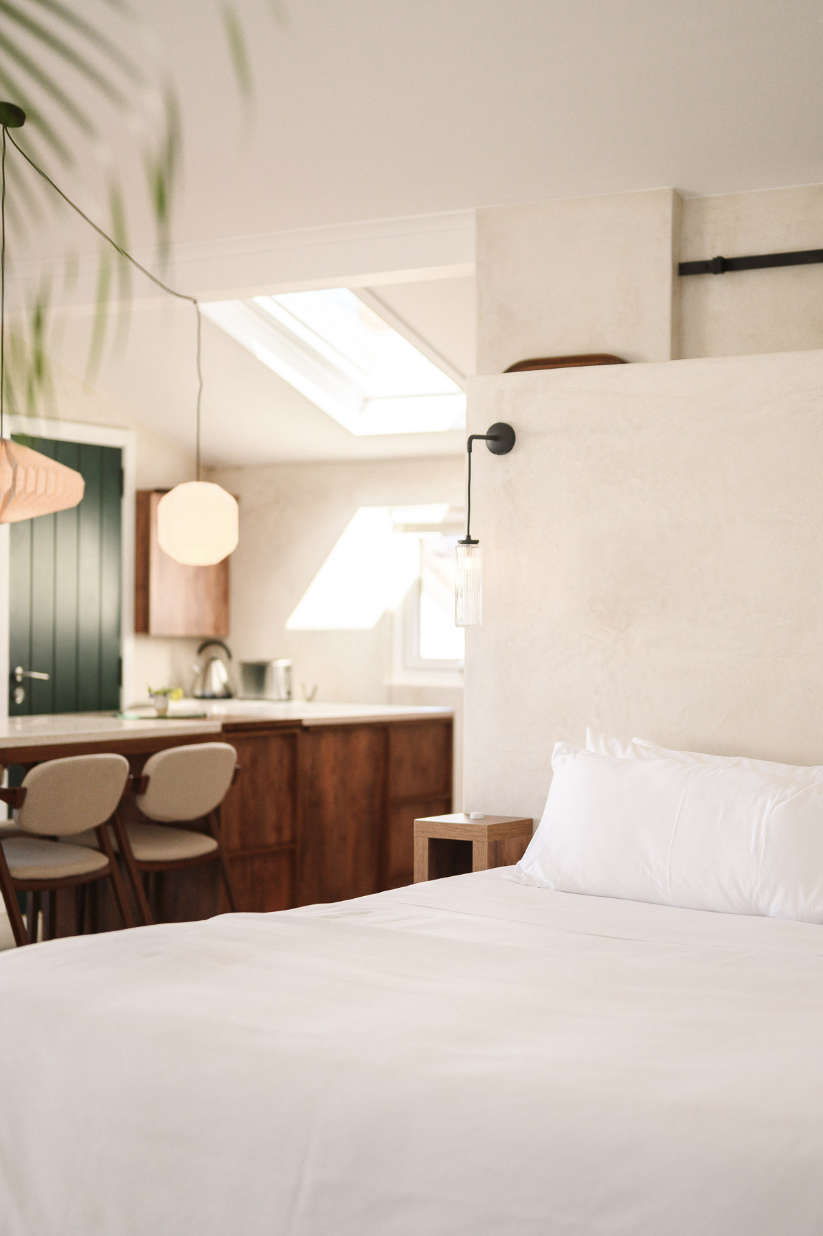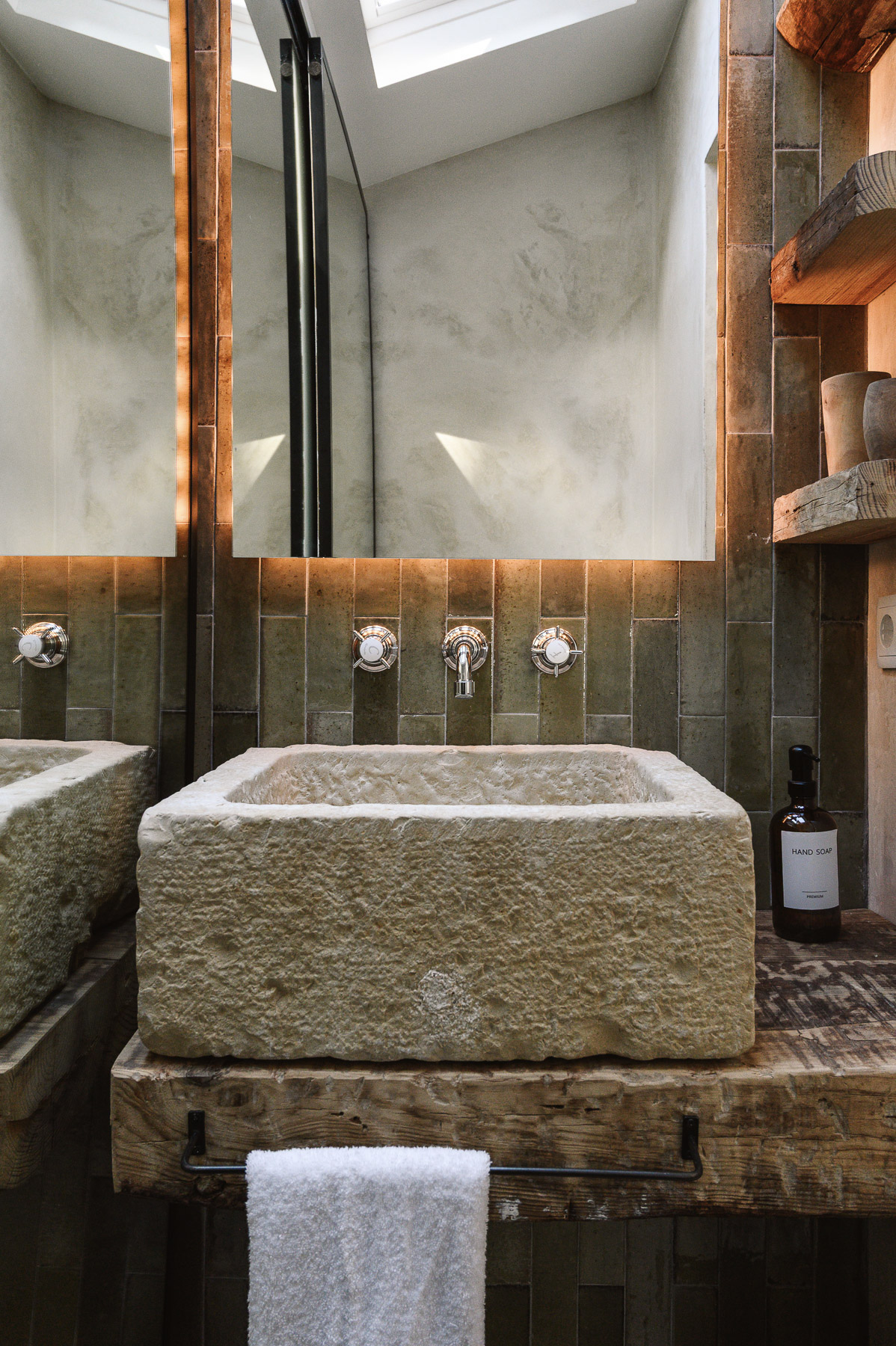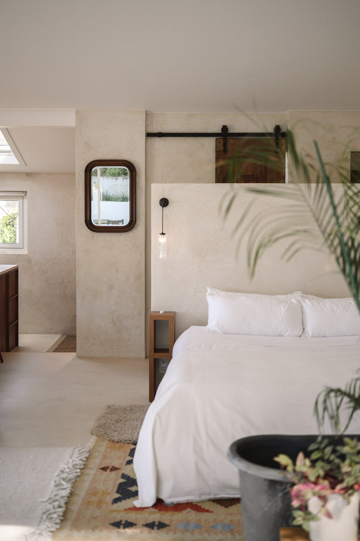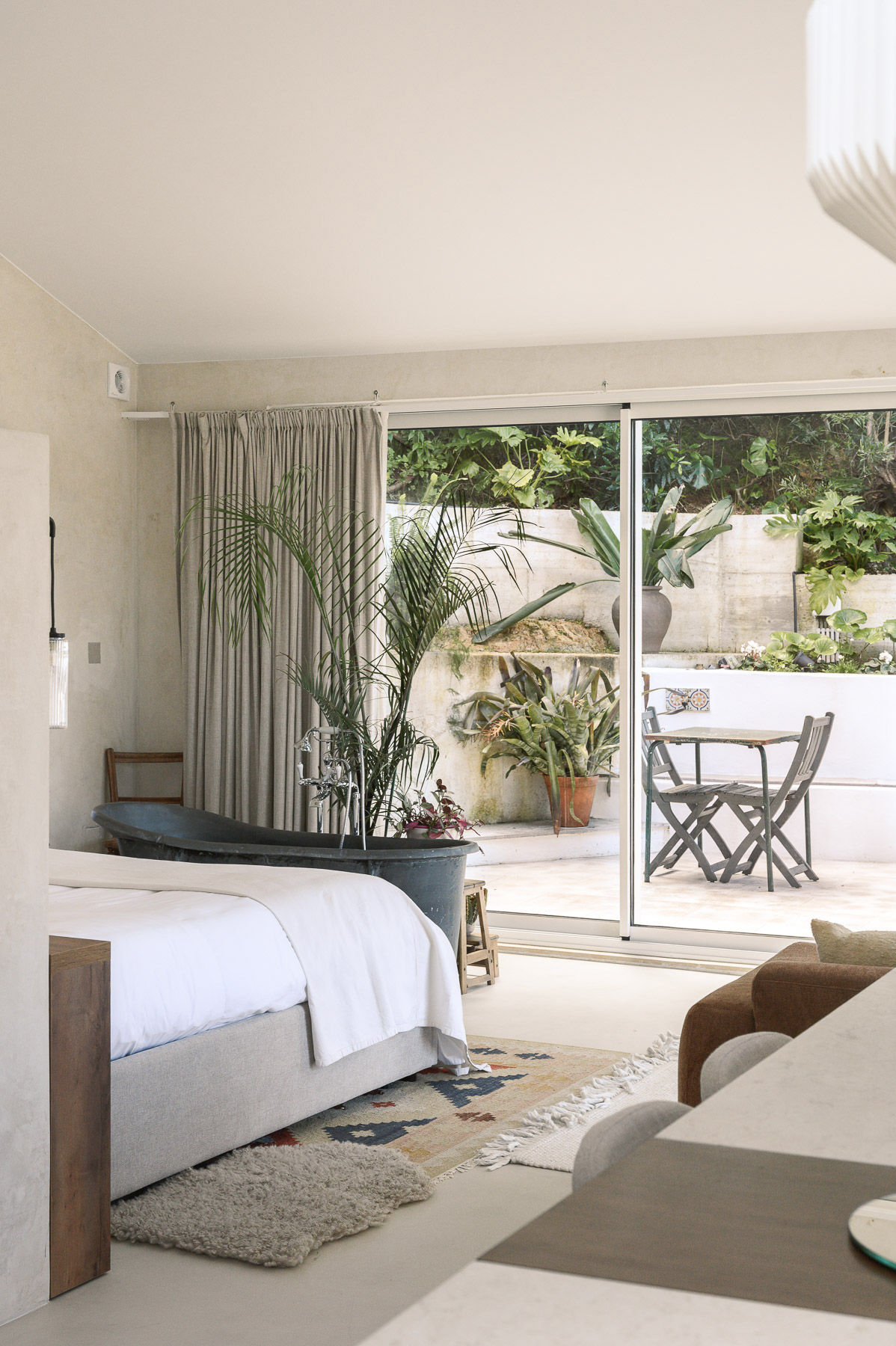 Materials were selected for their tactile quality and authenticity: lime-plastered walls, reclaimed stone, locally sourced tiles, and timber elements ground the guest house in its Sintra setting. The finished project is a refined, texturally rich retreat that feels entirely at home within its hillside context.