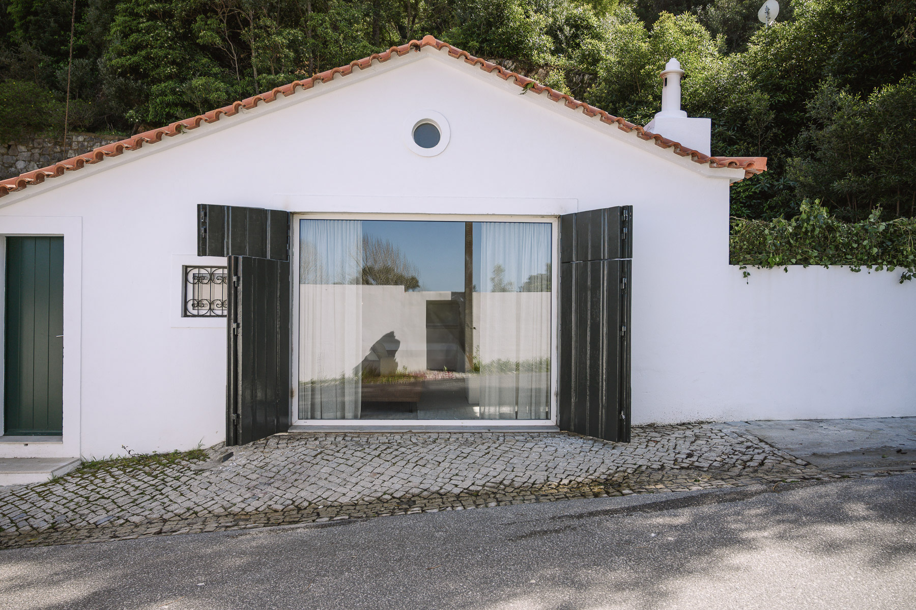 This once-crumbling garage on a hillside in Colares, Sintra, was fully rebuilt into a compact, contemporary guest house, resolving both structural and spatial challenges.