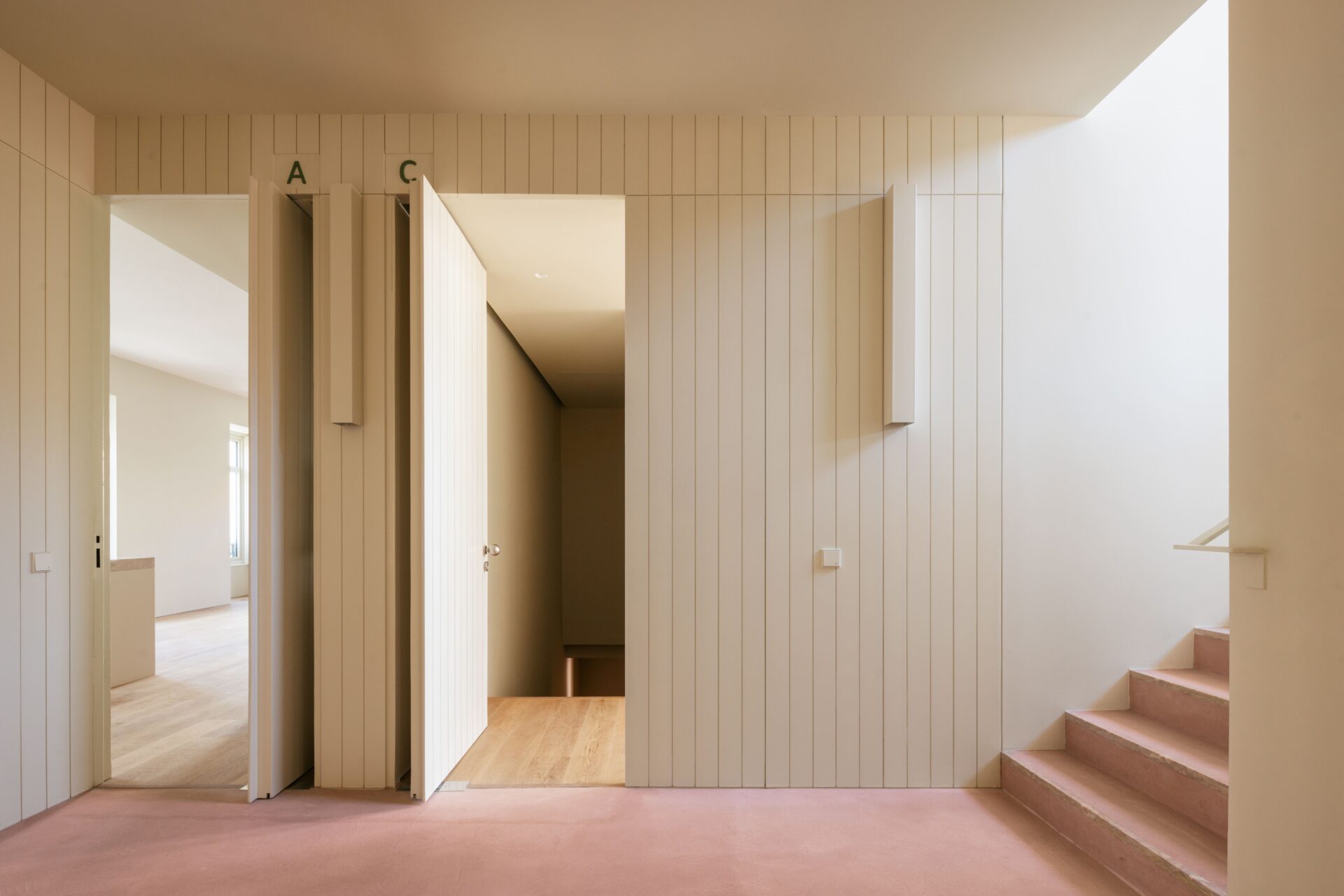 This partner development entailed a complete rebuild, including excavation for a new basement level, creation of underground parking, and the addition of a full-floor penthouse. Interior layouts were reimagined to maximise space, natural light, and functionality, and the garden was redesigned around a distinctive pink terrazzo pool, introducing private and shared outdoor amenities.