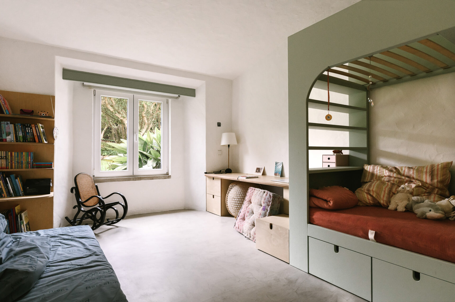 This family holiday home, set in the quiet hills of Colares, was carefully reworked to modernise essential elements without losing its original character. Built in the 1990s, the house had strong foundations: hand-finished plaster walls, terracotta floors, and generous openings to a vibrant garden. The layout and materials, however, felt conservative and dated. The renovation aimed to refine the spatial arrangement and update the finishes with smart, contemporary details.