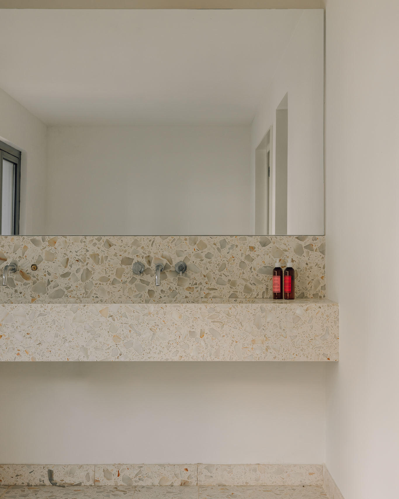 The development faced multiple challenges, including municipal delays, service connection issues, and a constrained budget. Yet every decision – from layouts to material selection – was carefully considered to maximize both spatial quality and long-term value. Bedrooms feature spacious built-in wardrobes. Italian marble bathrooms in soft pink tones and light wood create a refined warmth. Sliding French glass doors open the living areas to a 1260 m² private garden, anchored by a pool, pool house, and sauna designed by Nina Gardens.